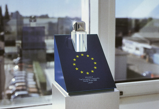 Unmistakable Lamy design does not end with the product but also features in the packaging, advertising, point of sales presentation and even the company architecture. This consistent approach is rewarded when the Commission of the European Community awards Lamy the newly created “European Design Prize 1988”.
