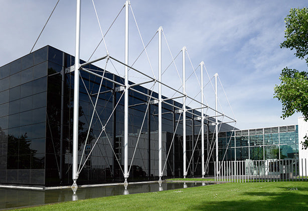 30 years of Lamy design: in the course of the anniversary celebrations, the new Lamy Galleria is opened – a glass hall flooded with light with walls covered in large pictures. A place of art and inspiration at the heart of Lamy. And right next door is the newly built development centre – the innovation workshop. This futuristic building in which Lamy has been designing, testing and manufacturing new products ever since stands out in particular due to its remarkable appearance – a black glass cube with solar panels, supported by silver steel cables and pylons clearly represents the clarity of Lamy design to everybody. At the same time, the architecture reflects the high level of innovation and the green credentials of the company with the photovoltaic modules on the façade, providing the building with solar energy while a water basin collects rainwater to reduce water consumption.